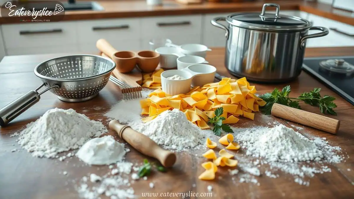 You’ll need a large skillet or pot, a pasta pot, colander, and basic utensils. These include a whisk and wooden spoon.