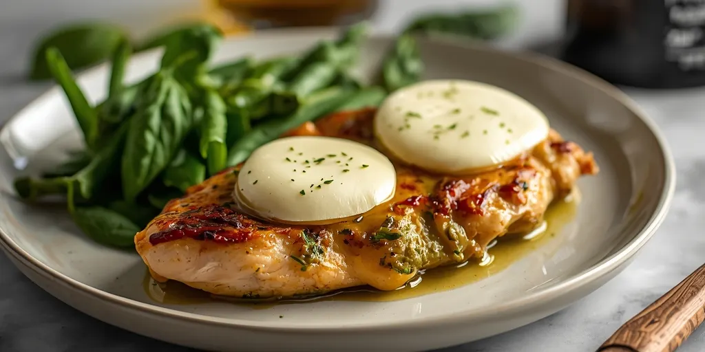 This Baked Pesto Chicken with Mozzarella is a delicious and easy-to-make dish that combines the rich flavors of basil pesto and creamy mozzarella in a simple oven-baked meal.