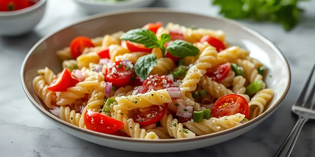 Pro Tips: Use a variety of colorful vegetables for a visually appealing salad. Ingredient Substitutions: Swap mozzarella balls for feta cheese for a tangy twist. How to Serve: Ideal as a side dish for grilled meats or as a main dish on hot summer days. Storage & Freshness: Best enjoyed within 3 days of preparation. Make-Ahead Tips: Prepare the salad a few hours in advance, but add the basil just before serving to keep it fresh.