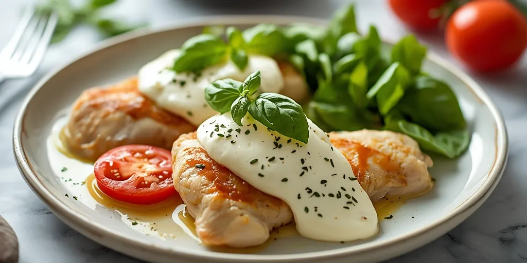 A creamy Italian chicken dish that combines the flavors of caprese salad with juicy chicken and rich burrata cheese.