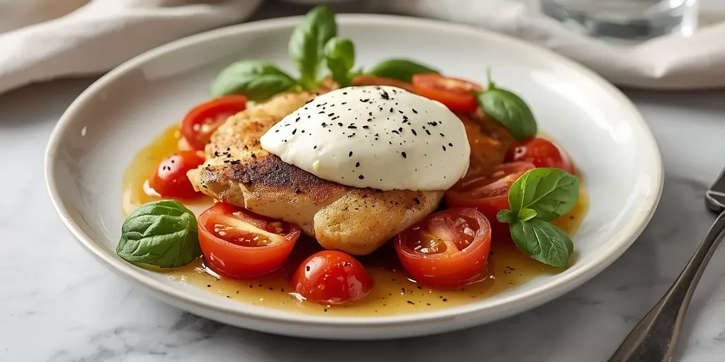 A delightful fusion of Italian flavors, Burrata Chicken Caprese combines succulent chicken with creamy burrata and fresh tomatoes for a perfect brunch dish.