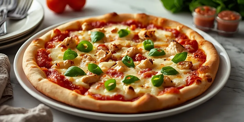 This chicken cheese pizza combines classic Italian-American flavors with a creamy, cheesy twist. Perfect for family gatherings or gourmet nights at home.