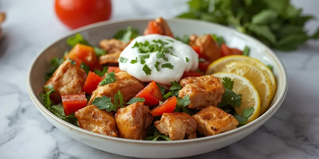 A flavorful and healthy chicken shawarma bowl perfect for a nutritious meal, easy to make with a simple marinade and fresh ingredients.
