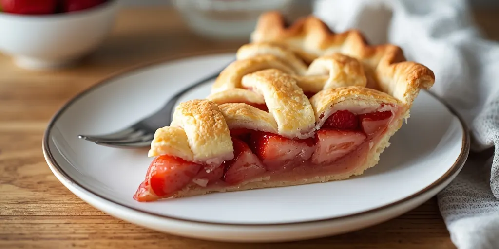 A timeless dessert that brings together the perfect balance of sweet strawberries and tart rhubarb, encased in a flaky lattice crust.