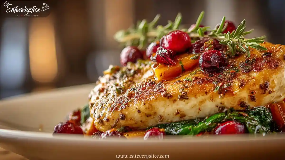 This dish beautifully combines savory chicken breast with a medley of spinach and tart cranberries, topped with creamy brie.