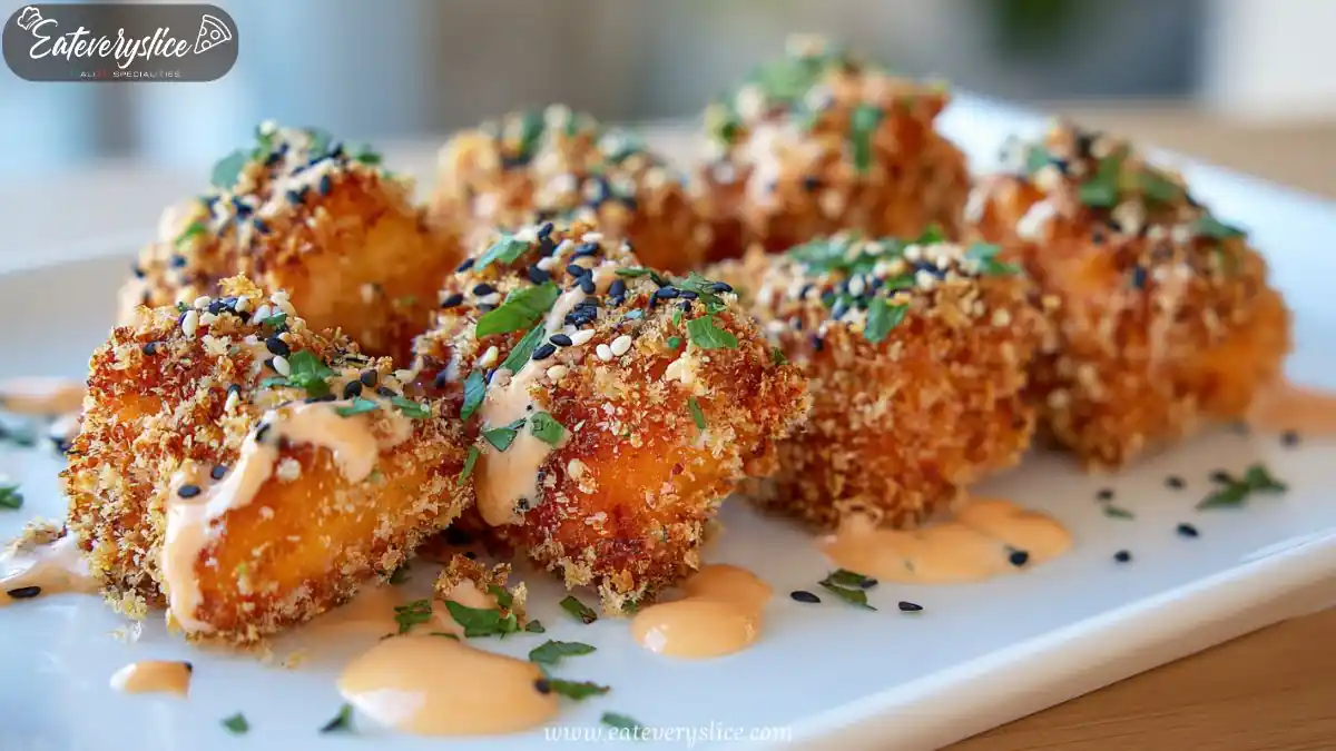 Crispy Bang Bang Salmon Bites are delicious morsels of salmon coated in a golden panko crust, served with a spicy-sweet sauce for a perfect appetizer or family dinner.