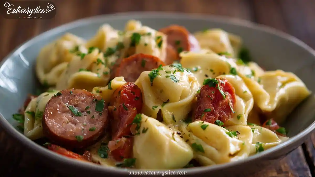 A comforting slow-cooked casserole featuring tender pierogies and smoky kielbasa, perfect for chilly evenings.