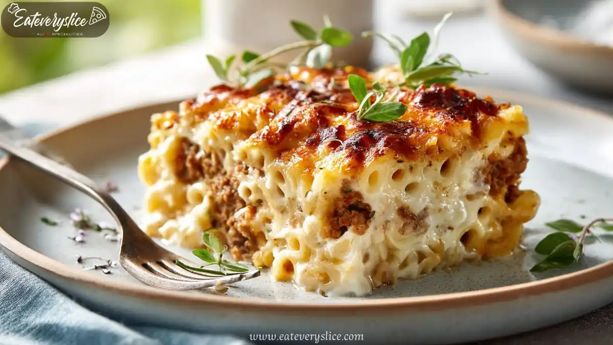 Let the bake rest for at least 10 minutes before serving so the layers set and portions hold together.