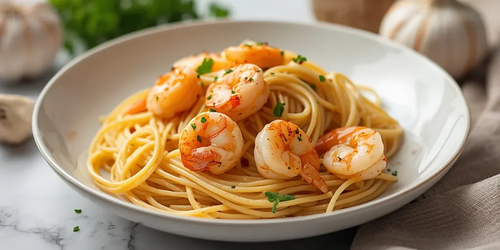 A quick and easy garlic shrimp pasta perfect for busy weeknights. This delicious Italian-inspired dish combines succulent shrimp with a rich garlic butter sauce, tossed with spaghetti.