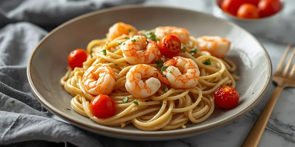 A light and fresh garlic shrimp pasta that's easy to prepare and perfect for a quick, healthy dinner.