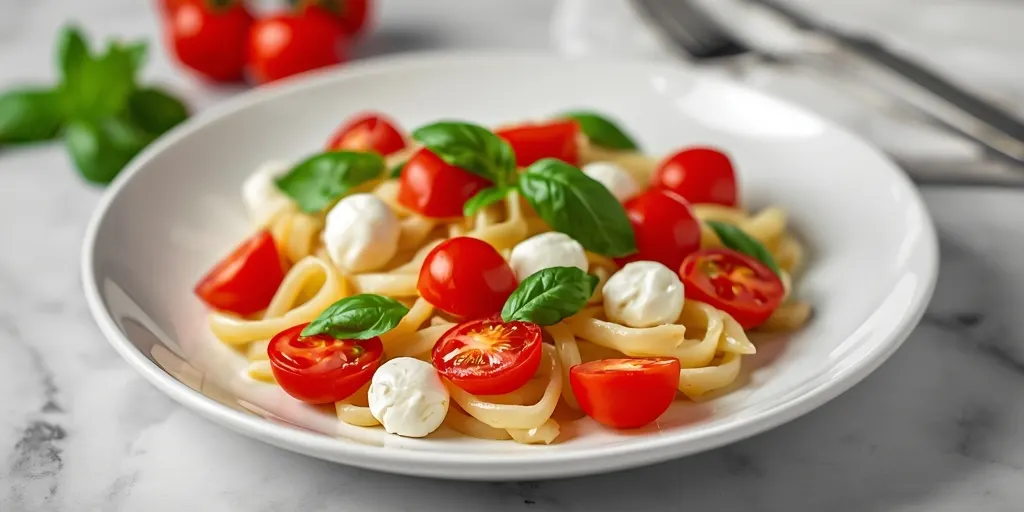 Pro Tips: Choose high-quality ingredients for the best flavor. Ingredient Substitutions: Use gluten-free pasta if desired. How to Serve: Serve with a drizzle of balsamic glaze. Storage & Freshness: Keep refrigerated and consume within 2 days. Make-Ahead Tips: Prepare pasta and combine with tomatoes and mozzarella a day ahead, add basil and dressing before serving.