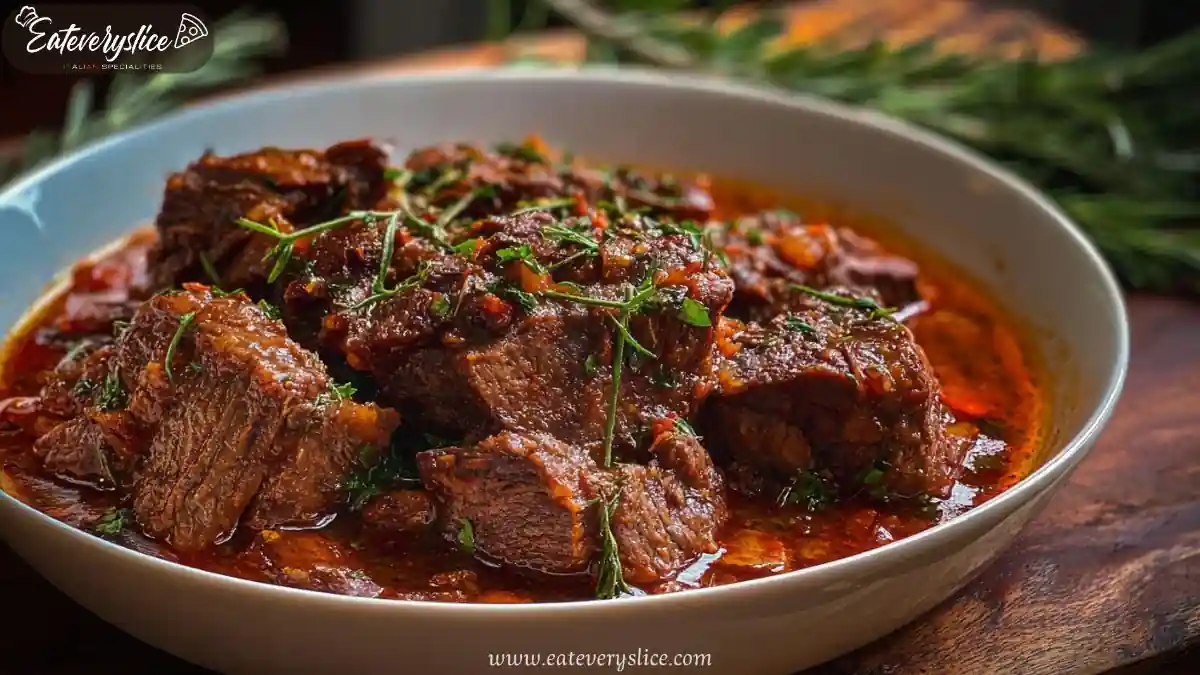 A comforting Italian Style Pot Roast with tender beef, rich tomato sauce, and fragrant herbs, perfect for family gatherings.