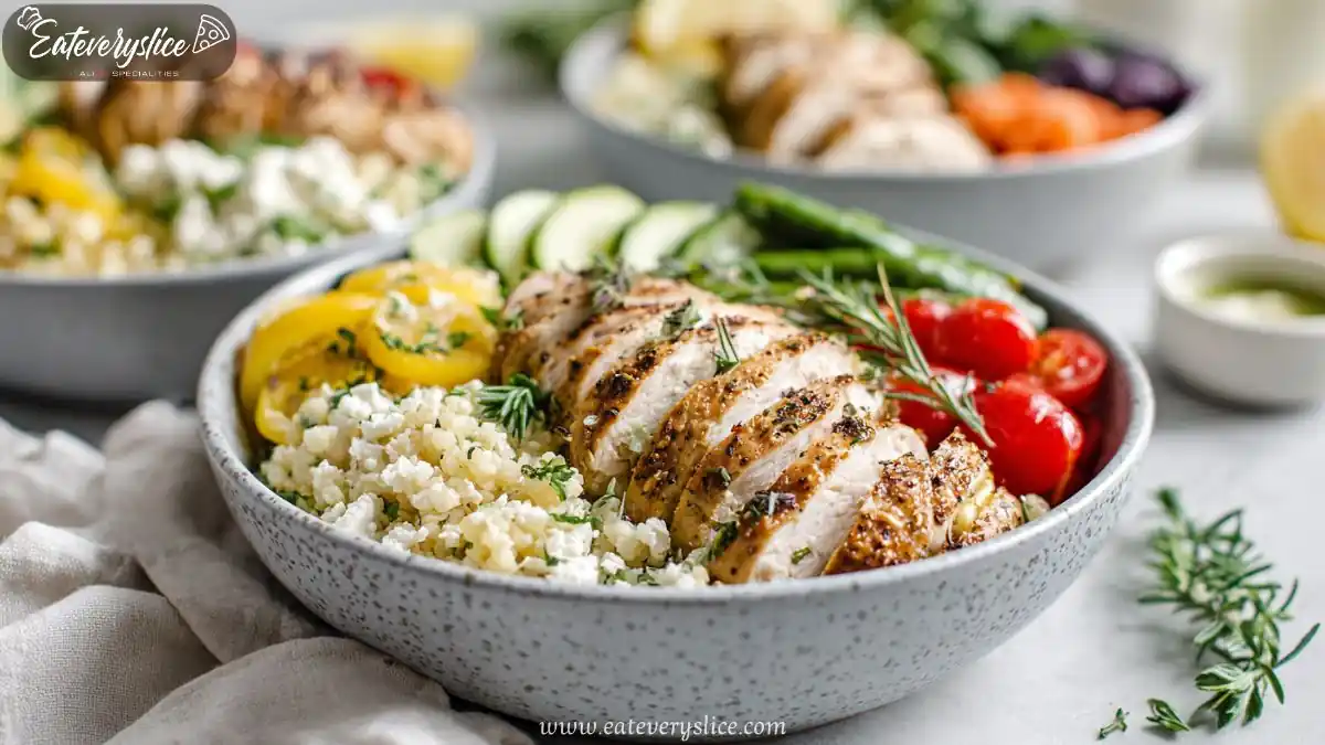 Fresh lemon herb chicken meal prep bowls with grains and vegetables for a bright, balanced, and make ahead friendly meal.