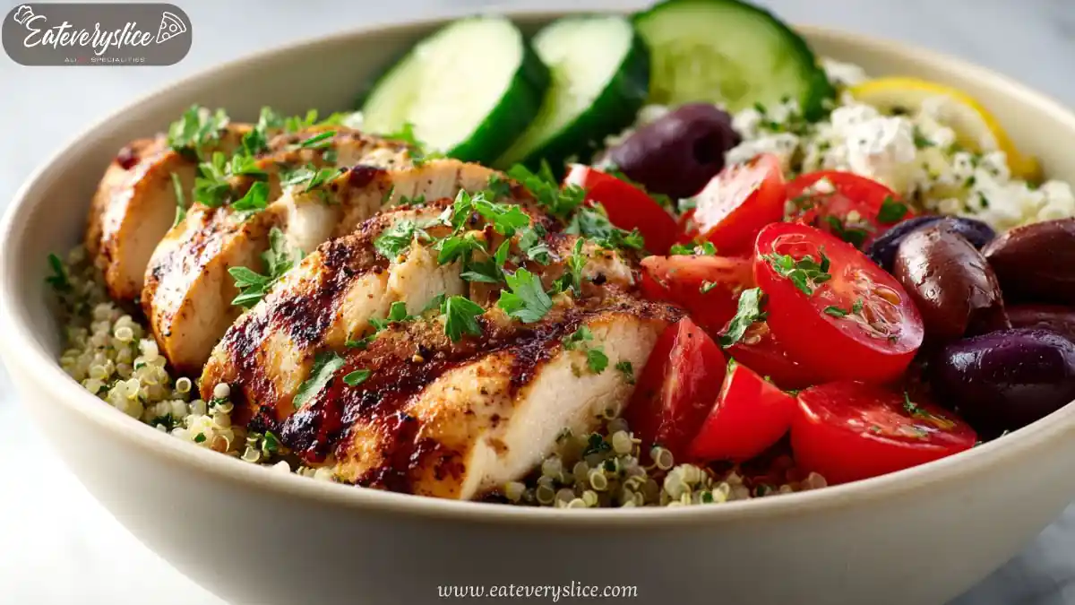 Fresh Mediterranean clean eating dinner bowls with wholesome grains, vegetables, and lemon dressed protein for a balanced and nourishing meal.