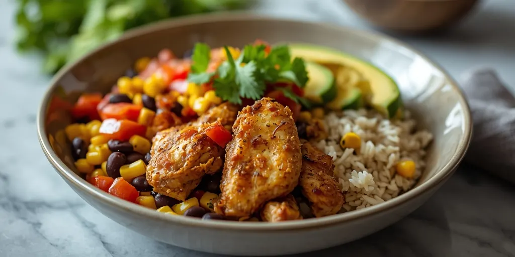 A delightful and customizable Mexican Chicken Burrito Bowl perfect for gatherings, offering vibrant flavors and a healthy approach.