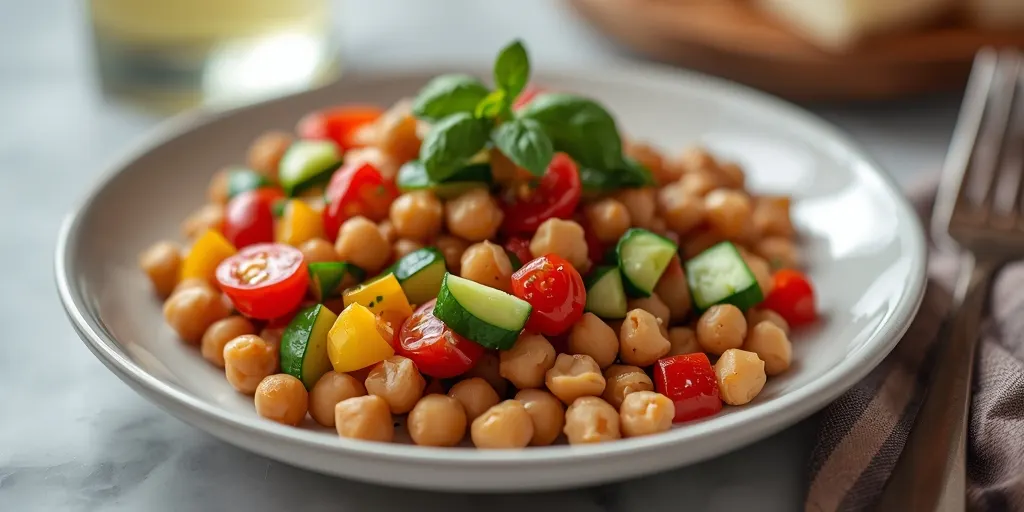 A vibrant Moroccan Mediterranean Chickpea Salad packed with flavors and textures, perfect for any occasion.
