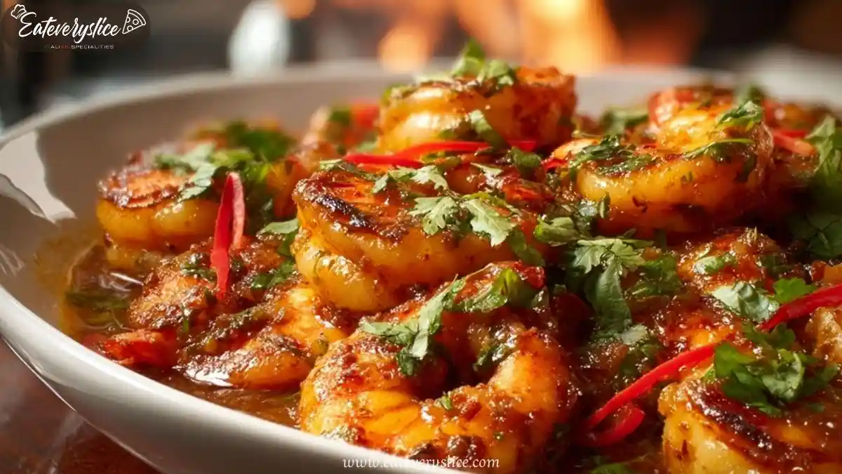A vibrant, zesty Creole dish featuring succulent shrimp in a bubbling sauce, infused with Cajun spices for an irresistible kick.