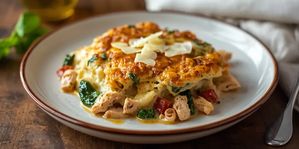 A creamy and flavorful casserole featuring tender chicken, sun-dried tomatoes, and a blend of Italian cheeses, perfect for family dinners.